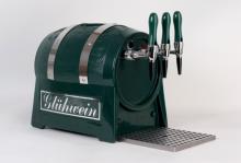Getränkedurchlauferhitzer 3-leitig in Fassform mit integriertem Luftkompressor zum Zapfen aus KEG-Fässern,